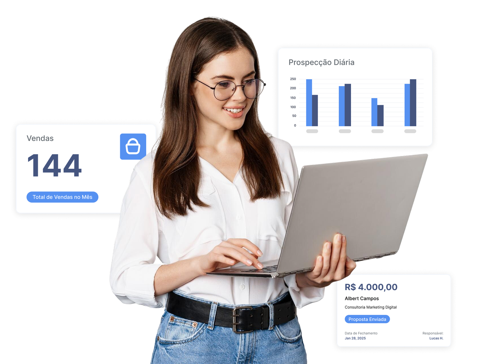 Visual moderno e navegação fluida para uma experiência leve e eficiente desde o primeiro uso. Gerencie contatos, vendas e relacionamento em uma plataforma simples e poderosa.