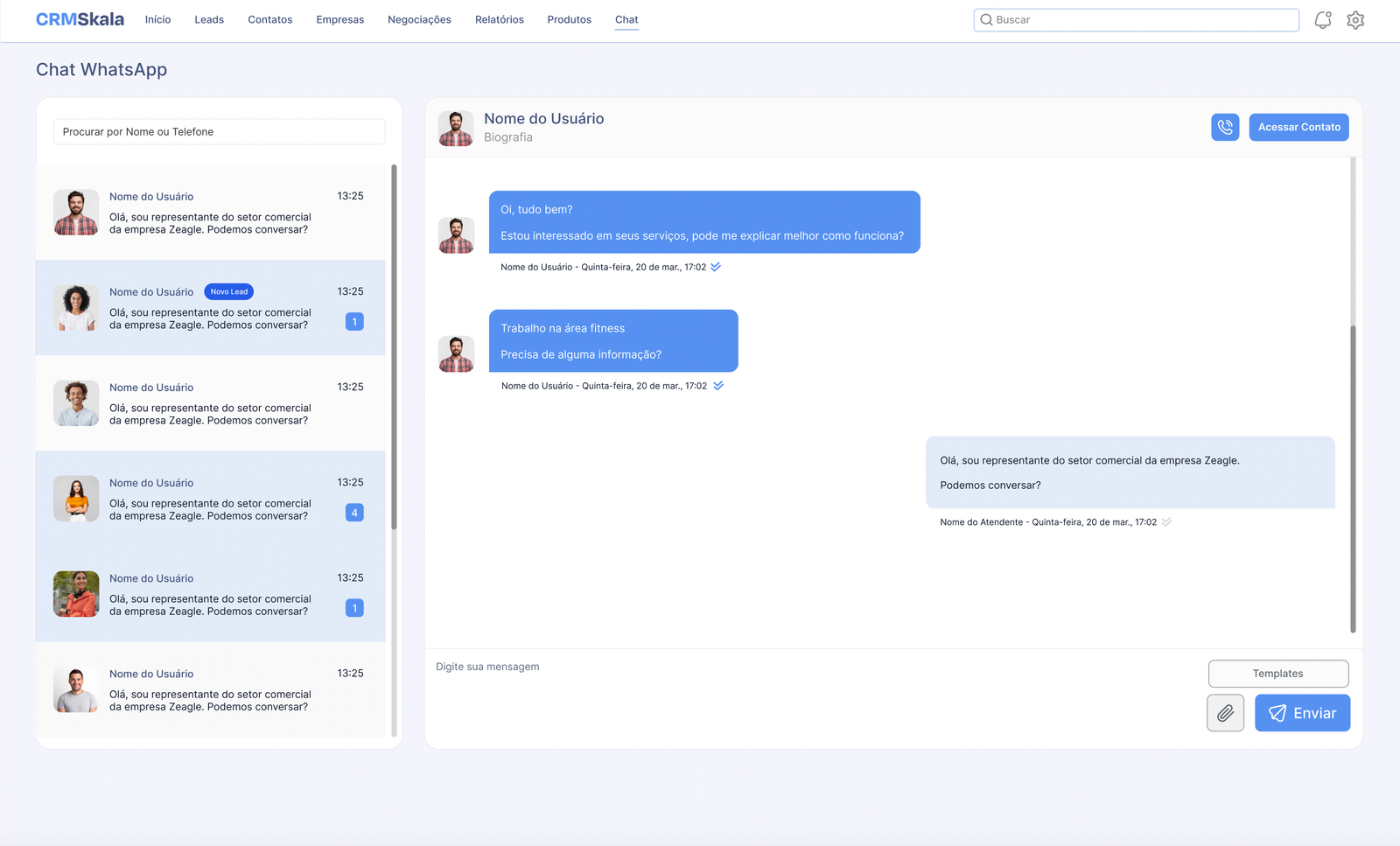 Comunique-se com seus contatos direto na plataforma e converta mais rápido.