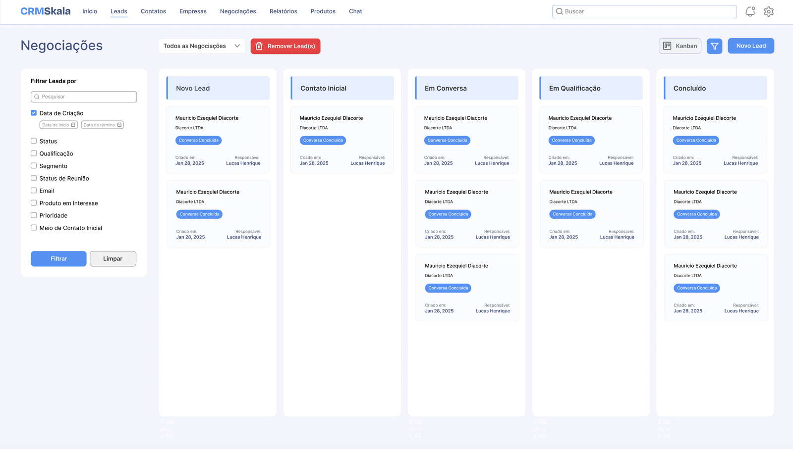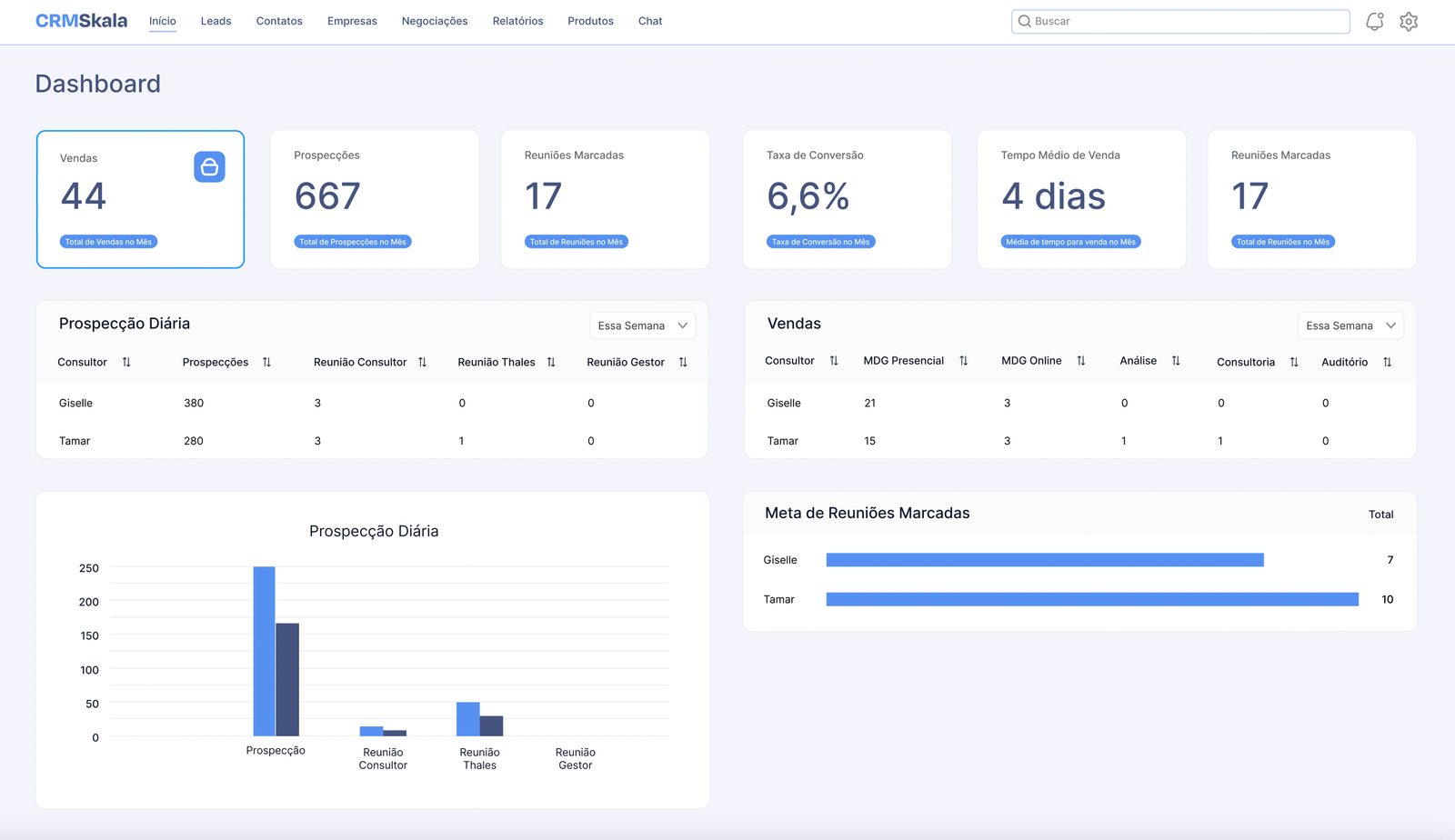“O CRMSkala trouxe exatamente o que a gente precisava: agilidade, organização e uma curva de aprendizado praticamente zero. Em menos de uma semana, toda a equipe já estava dominando o sistema.”